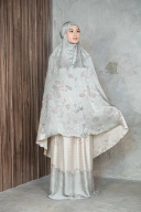 Satu set mukena dilengkapi dengan tas cantik dan sajadah