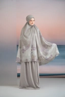 Satu set mukena dilengkapi dengan pouch quilting dan sajadah