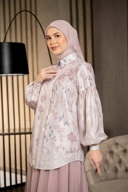 Potongan lengan dengan detail kerut dan motif yang berbeda dilengkapi dengan manset