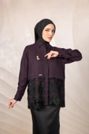 Terdapat detail brocade 3D bermotif bunga yang manis pada bagian bawah blouse