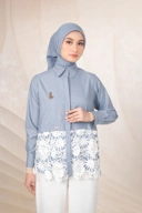 Terdapat detail brocade 3D bermotif bunga yang manis pada bagian bawah blouse