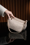 Berbahan vegan leather bertekstur kasar dengan motif emboss monogram heylocal