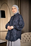 Potongan lengan dengan detail kerut dan motif yang berbeda dilengkapi dengan manset
