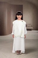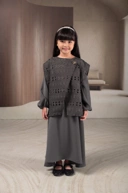 Lume dress anak ini memadukan kesan anggun dan modern melalui kombinasi inner dress A-line yang ringan dan vest brocade bermotif geometris yang menjadi statement.