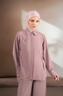 Menggunakan bahan twill lembut yang jatuh natural namun tetap memiliki struktur ringan, menciptakan siluet rapi tanpa terasa kaku.