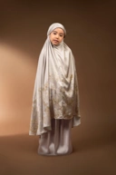 Mukena anak berbahan silk bermotif bunga dirancang khusus untuk memberikan kenyamanan maksimal bagi si kecil saat beribadah.