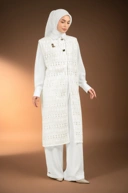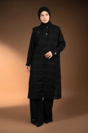 Vest panjang berbahan brokat premium menghadirkan tampilan classy yang easy-to-wear.