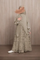 Renjana Set dress elegan dengan material lace bermotif yang memberikan kesan manis dan anggun.
