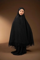 Mukena Renjana anak dengan renda di bawah kerudung dirancang khusus untuk memberikan kenyamanan, kepraktisan, dan tampilan manis bagi anak-anak.