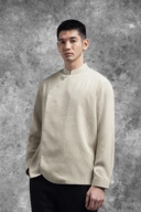Hadir dengan kerah tegak shanghai untuk kesan tegas dan berwibawa, kemeja ini memberikan sisi tegas melalui detail Panel Depan Asimetris dengan sentuhan modern yang unik.