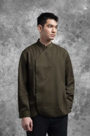 Hadir dengan kerah tegak shanghai untuk kesan tegas dan berwibawa, kemeja ini memberikan sisi tegas melalui detail Panel Depan Asimetris dengan sentuhan modern yang unik.
