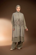Kombinasi bahan Floral Sheer pada layer luar dan Saba Twill pada badan dalam