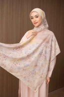 Fleur de Rêve Scarf ini menghadirkan taman bunga abstrak yang berpendar dalam palet pastel. Kelopak besar digambar samar seperti bunga yang mekar perlahan, sementara rangkaian bunga kecil di tepinya hadir mengelilingi dengan anggun seperti taman kecil yang sedang bermekaran.